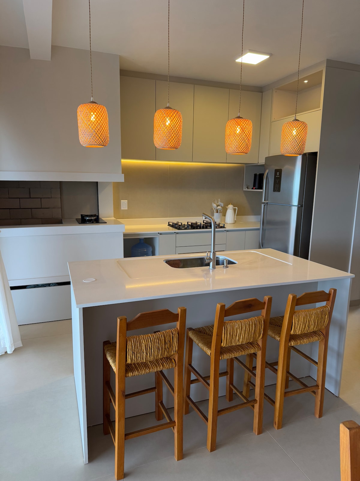 Casa nova e aconchegante, ideal para famílias. São 2 quartos com cama de casal, Wi-Fi 160 Mbps, Smart TV, espaço para trabalho e ventiladores em todos os cômodos. Cozinha equipada. Área com churrasqueira, espetos e cadeiras de praia. Ótima localização: 400m do mar, mercado a uma quadra, próximo à Av. Interpraias, 10 min do centro de Arroio do Sal e 8 min do Acqua Lokos. Posto de recarga para carro elétrico a menos de 1 km. ⚠️ Não fornecemos itens de uso pessoal (lençóis/cobertas/travesseiro).