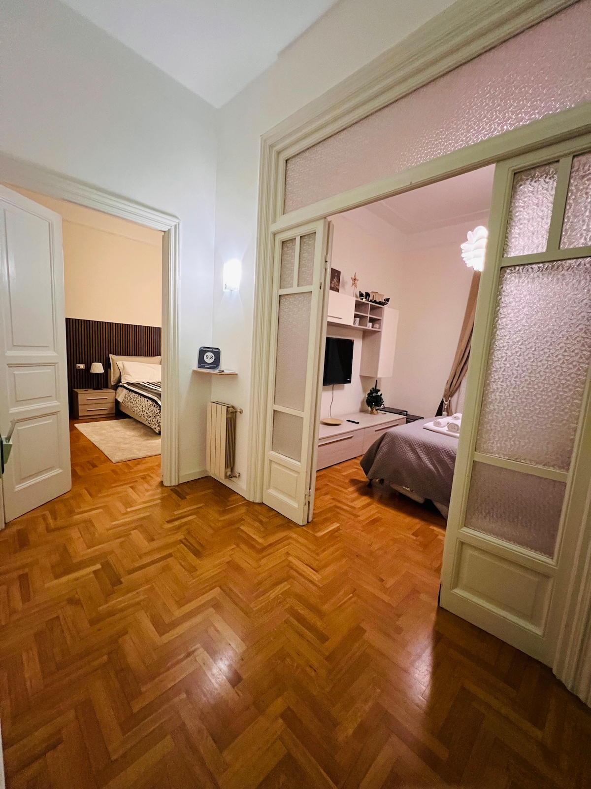 Amplasat într-o clădire istorică cu vedere la una dintre cele mai emblematice piețe din lume, acest apartament cu un dormitor este situat la primul etaj și se mândrește cu facilități moderne și o curte pavată de invidiat, perfectă pentru cine în aer liber. Ideal pentru cupluri sau familii mici, apartamentul are un sistem de aer condiționat de top în toate camerele, sistem de sunet wireless cu mai multe camere, baie de aburi, precum și cadă . Ieși pe ușa din față pentru a arunca moneda și a te cufunda în atmosfera plină de viață a centrului orașului.