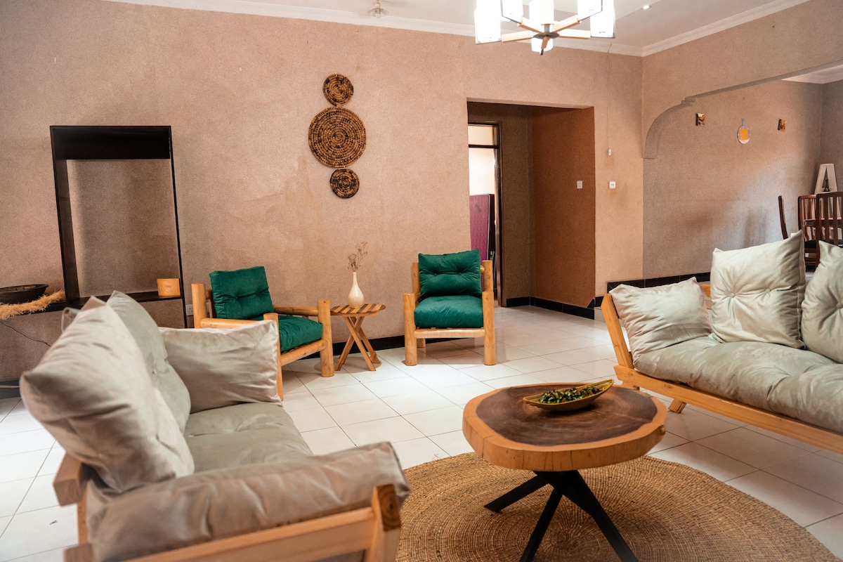Bine ai venit la „Arusha Artisan Abode”! Apartamentul nostru confortabil cu două dormitoare are un amestec unic de confort, amestecarea mobilierului tradițional și modern. Situat în inima orașului Arusha, ești la câțiva pași de piețele locale, cafenele și multe altele. Experimentează o bucătărie complet utilată și paturi confortabile de dimensiuni queen (dimensiune 5x6). Fă-ți șederea specială la noi!