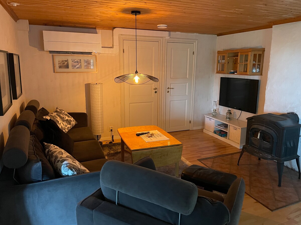 Bine ai venit la refugiul tău liniștit! Apartamentul nostru spațios de la parter din centrul orașului Arvika este perfect pentru relaxare. Bucură-te de o zonă de living generoasă, cu dormitor spațios, saună privată și duș răcoritor. Apartamentul este în întregime privat, deși împărțim intrarea. Confortabil lângă șemineu și folosește bucătăria comună complet echipată. Micul dejun este disponibil la cerere. Beneficiază de parcare gratuită și explorează cu ușurință Arvika. Sunt disponibile două biciclete pentru aventuri locale. Rezervă acum pentru o ședere liniștită!