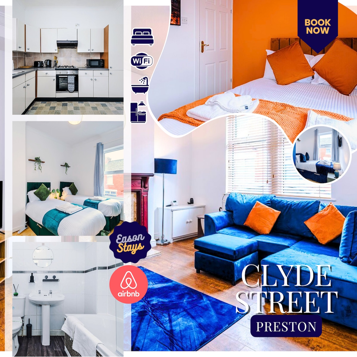 Our new stunning studio apartment in Preston City centre has a king size bed . A comfortable seating area with a large screen smart TV. The kitchen has a fridge, oven, hob,kettle,toaster and microwave. We provide complementary tea,coffee sugar cereal and fresh milk on arrival. A smart shower room with toilet and wash basin and illuminated mirror. Just 20 yards from the new ANIMATE entertainment complex.Reserved parking next to the apartment is included