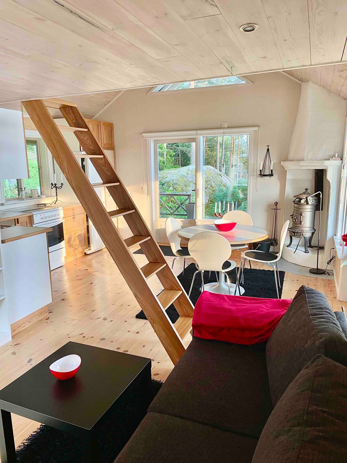 Îți place să te uiți pe fereastră, pe o pajiște sălbatică care duce la un lac? În timp ce bei niște pâine prăjită cu unt și prima cafea proaspăt preparată a zilei? Cred că o să-ți placă aici. Mica casă roșie se află la aproximativ 90 m de Spannsjö, pe malul căreia ferma mea este singura proprietate imobiliară. Mica ta casă roșie are tot ce îți trebuie, indiferent de sezon: dormitor cu 4 paturi, living, baie, bucătărie complet funcțională și propria mașină de spălat. Wi-Fi este în casă.