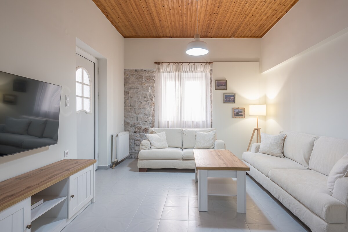 Acesta este un studio de piatră la doar câteva minute de mers pe jos de plajă. Deși este situat la o scurtă plimbare de portul Kioni, unul dintre cele mai populare și frumoase porturi ale Ioniei, la o scurtă plimbare de cealaltă parte, te vei afla într-o zonă rurală, unde fermierii își păstrează animalele și recoltează terenul cu măslini. Este o controversă, dar aici se întâlnesc două stiluri de viață contradictorii. Te așteaptă o primire călduroasă, cu produse de cea mai bună calitate, daruri ale terenului Itacan.