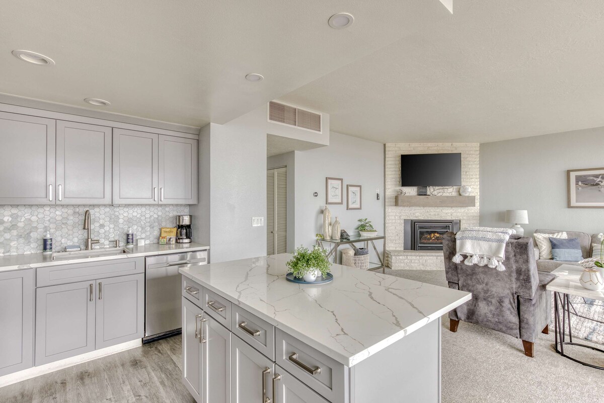 Ca New SEASIDE OCEANFRONT Condo on the Promenade!Vedere superbă la ocean cu balcon! Living deschis, sufragerie și bucătărie nou-nouță, șemineu Elec, mobilier nou, canapea extensibilă Queen confortabilă nouă, birou cu computer, imprimantă/scaner, televizoare noi de 60"cu cablu, internet gratuit .WORK de LA DISTANȚĂ!Master Bedroom Suite are o nouă saltea confortabilă King Sleep Number, cu baie proprie de remodelare, cu duș/cadă combo. Baia completă este remodelată și are duș!Unul dintre cele mai frumoase pe malul oceanului de pe litoral. Consultă unitatea noastră de la etajul 2