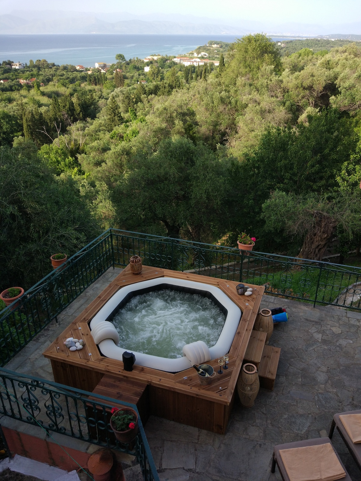 Apartament mic rustic detașat, cu vedere panoramică la mare. Luminos, curat și foarte liniștit într-o pădure cu flori, măslini, lămâi și portocali. Se compune dintr-un dormitor cu două paturi de o persoană, bucătărie complet utilată și baie. Exteriorul include o grădină mare cu grătar și o terasă cu un Hydrojet mare și un spa încălzit Airjet.
