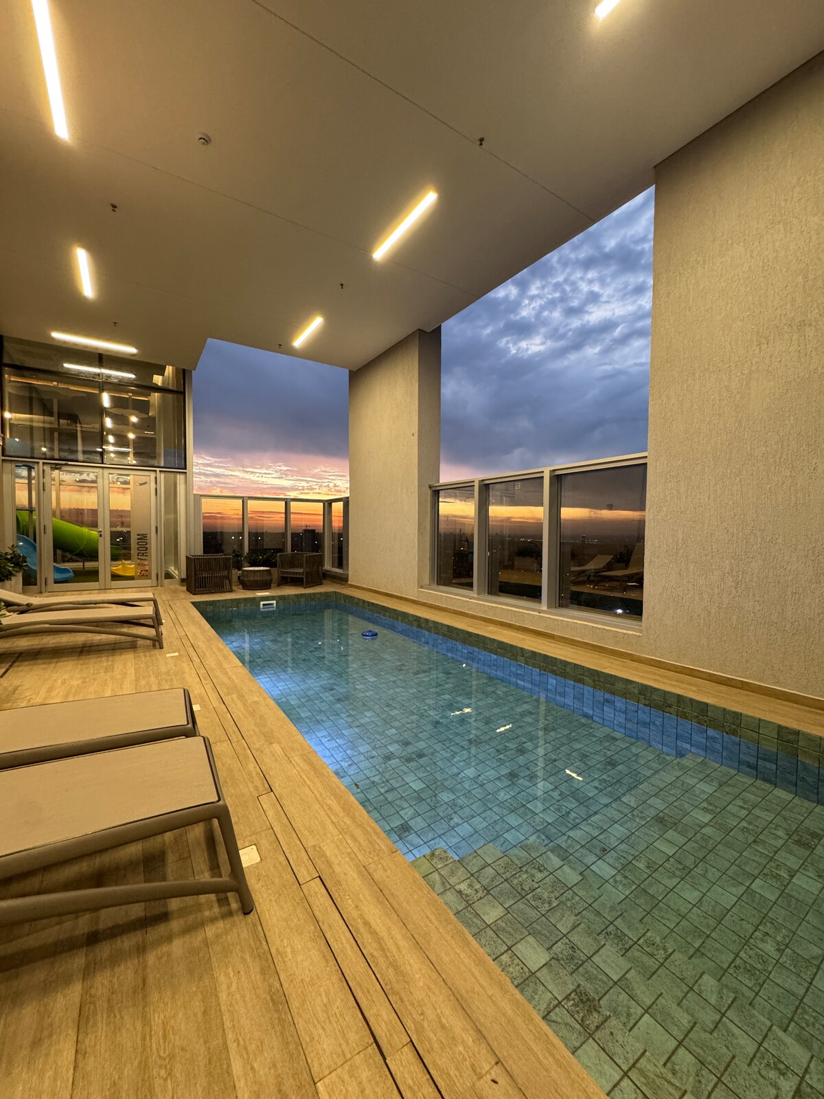 Cazează-te într-un studio elegant, la doar câțiva pași de mall-urile de top din Asunción. Această clădire modernă are o piscină pe acoperiș, sală de gimnastică, cinematograf, spațiu de coworking și zone de grătar. Perfect pentru șederi de scurtă durată, într-o locație sigură și vibrantă. La numai 250 m de Shopping del Sol. Securitate non-stop și recepție. *Această unitate nu are parcare în interiorul clădirii.