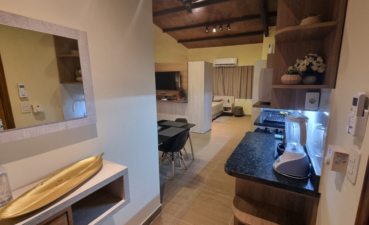 Apartament tip loft, complet privat și independent. Decor sobru cu iluminat excelent și aer condiționat. Cu birou pentru persoanele care vin în interes de serviciu. Aproape de noul centru corporativ și comercial din Asunción. Are o terasă mare cu piscină, verandă cu grătar și sală de gimnastică.