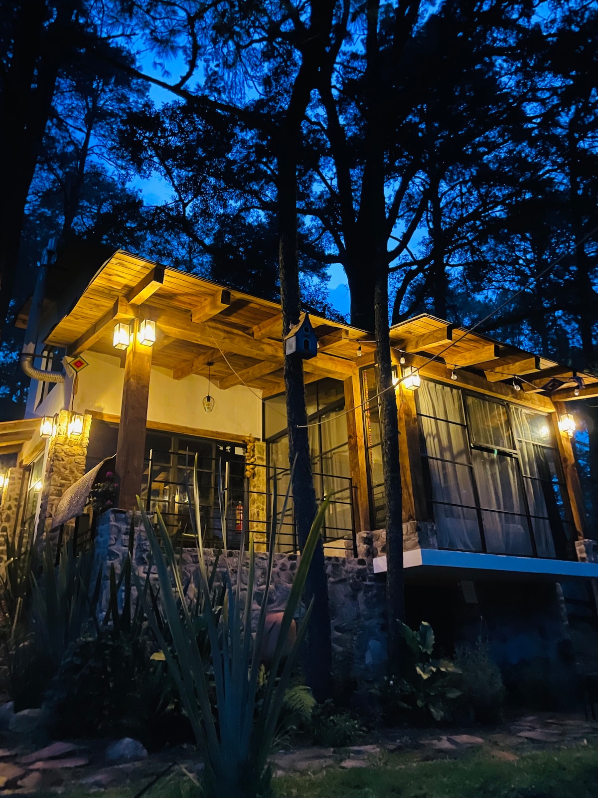 Luna del Bosque Cabin,(Pet-friendly) este ideal pentru cuplurile care sunt în căutarea unui spațiu de intimitate și confort în mijlocul pădurii. Ea are o bucătărie, terasă cu o vedere frumoasă și un dormitor confortabil cu un șemineu interior și tot ce ai nevoie să-și petreacă zile și nopți de neuitat. Afară este un foc de tabără pentru a petrece serile sub stele. Cabana este situată la 10 minute de centrul orașului Tapalpa în subdiviziunea Rancho Club Friends din Tapalpa.