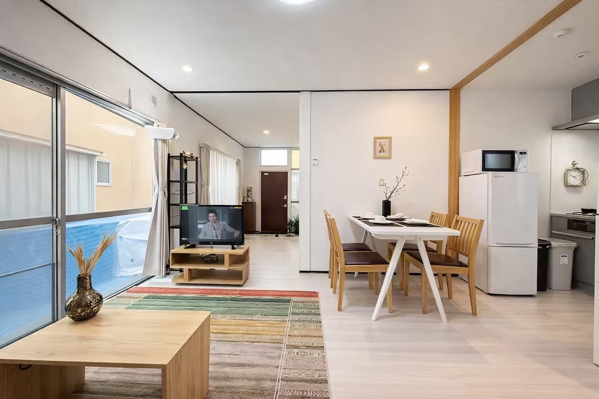 Experimentează un amestec unic de design scandinav și japonez în această locuință renovată, în vârstă de 86 de ani, cu două etaje din Sangenjaya. Cu 80 de metri (900 ft²) de spațiu luminos, un tavan de 3 metri și un tavan dramatic de 7 metri deasupra bucătăriei, este perfect pentru familii și grupuri mici. La doar 6 minute de gară și la 4 minute de Shibuya, casa oferă combinația perfectă de calm și confort urban într-unul dintre cele mai îndrăgite cartiere din Tokyo, Sangenjaya.