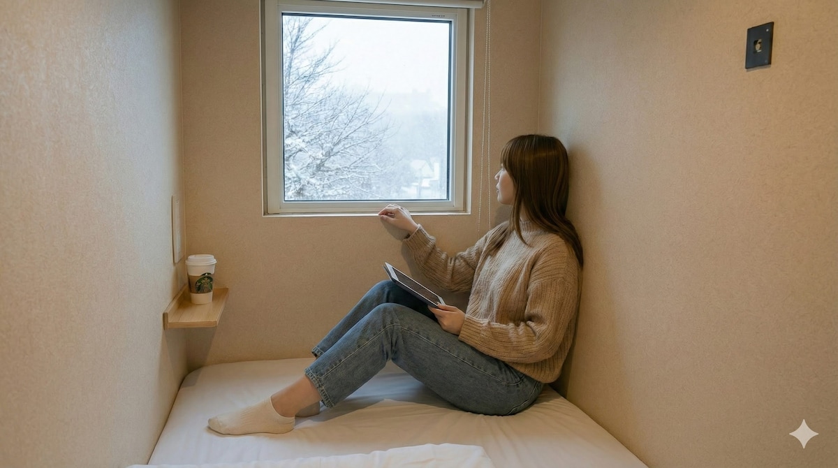 Sho în カプセルタイプの客室なのにドア鍵付き完全個室!小樽駅行きバス停は徒歩1分