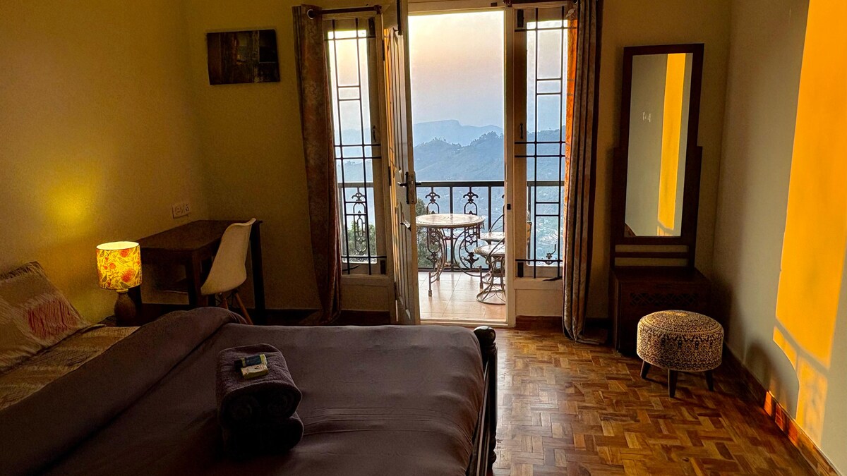 Welcome to Valley View Studio by Whispering Palms Kodaikanal a bright, spacious retreat designed for slow mornings, cozy evenings, and uninterrupted views of the hills. Perched above the valley, the studio is filled with natural light through large glass windows and opens out to a private balcony overlooking Kodaikanal town and distant lake views. Wake up to beautiful sunrises right from your room, making mornings here truly special.
