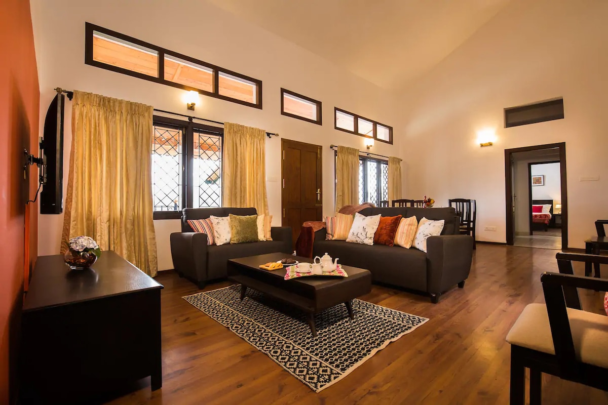 Această casă tip A, cu 3 dormitoare, se află pe o stradă liniștită din Vilpatti, la doar 6 km de centrul orașului Kodaikanal. Cu aproape trei sferturi din partea din față construită cu sticlă, livingul oferă priveliști uimitoare cu munții liniștiți. Casa are o curte pavată frumoasă, extinsă, o mini bibliotecă, scaune de lucru confortabile și o bucătărie complet funcțională, ceea ce o face perfectă pentru familii cu copii. Priveliștea răsăritului de soare, cu raze care cad pe munți, este cel mai bine savurată de la primul etaj.