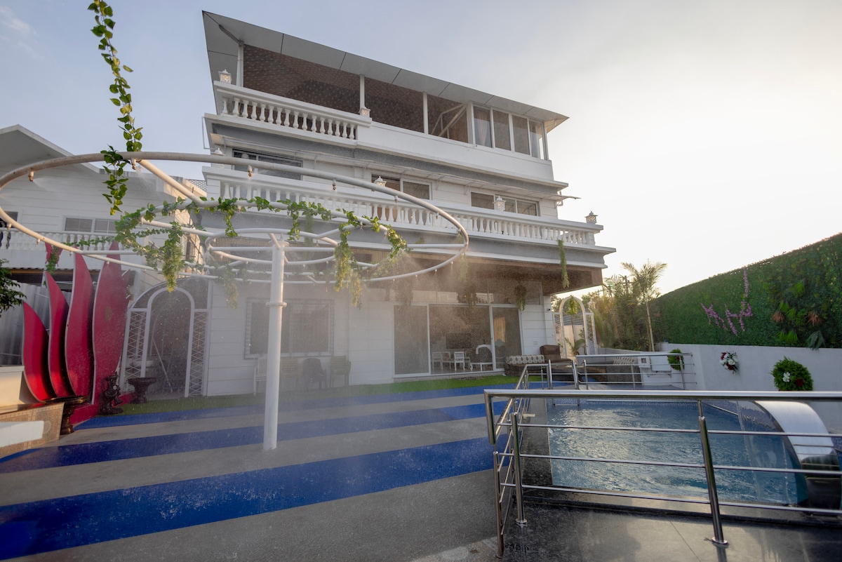 Îmbunătățește-ți evadarea la BNB-ul nostru premium de lux din Lonavala! Bucură-te de vila 3bhk cu facilități moderne, dormitoare frumoase, piscină privată, vedere pitorească, Smart TV, Wi-Fi, serviciu de chef, grătar, foc de tabără, jocuri de interior, încărcare a mașinilor electrice și multe altele. Perfect pentru o escapadă liniștită sau un refugiu elegant în natură. Fă amintiri cu prietenii și familia, cu împrejurimi verzi luxuriante și toate necesitățile la câteva minute distanță, iar dacă te plictisești să gătești, consultă planul nostru de masă. PS: Zomato, Blinkit și Swiggy disponibile