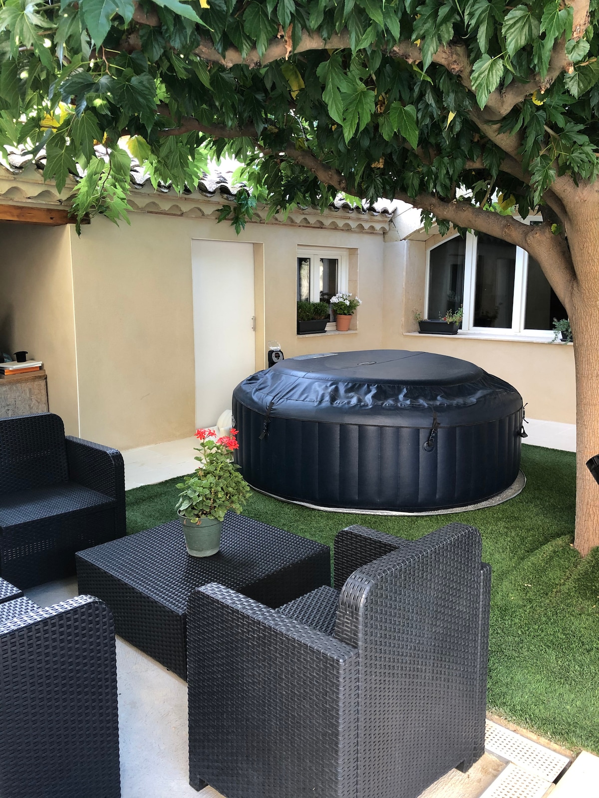 Suită în Nîmes cu jacuzzi privat și videoproiector. Un cocon cald și liniștit pentru a-ți reîncărca bateriile. Profită de grădina privată cu cadă cu hidromasaj și fotoliu suspendat. Apartamentul are un pat matrimonial, baie mare și videoproiector cu acces la multe aplicații de streaming, cum ar fi „NETFLIX”, „Disney +” etc. Pentru a vă face șederea și mai de neuitat, bucurați-vă de un masaj la fața locului în cabina noastră de masaj foarte confortabilă.