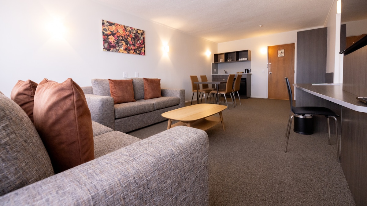 Bine ai venit în apartamentul nostru cu un dormitor de la Botany Palms Motel, conceput pentru confort și comoditate. Bucură-te de un pat mare Imperial Luxury, 32 de televizoare inteligente plus internet nelimitat de mare viteză. Chicinetă include cuptor cu microunde, prăjitor de pâine, mini-frigider, facilități pentru prepararea ceaiului/cafelei, vase, veselă și tacâmuri. Facilitățile includ ventilator, încălzitor de perete, masă de călcat, articole de toaletă complete și apă îmbuteliată gratuită la sosire. Check-in-ul se închide la ora 18:00; check-in târziu cu aprobare prealabilă.