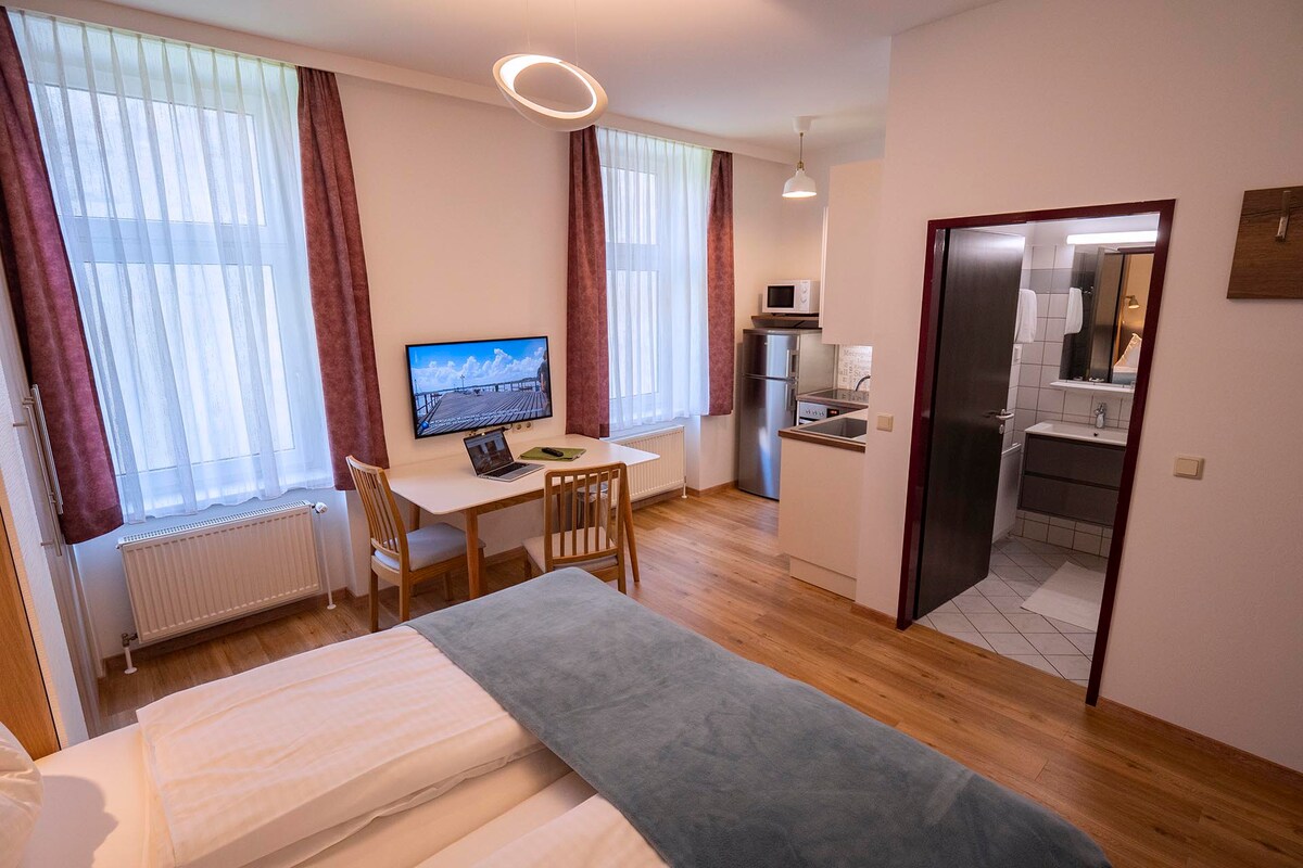 Apartament luminos, confortabil, cu dormitor, bucătărie și living. Până la 4 persoane sunt invitate să doarmă și să lucreze confortabil, precum și să se bucure de liniștea și de priveliștea frumoasă a parcului baroc Augarten, surprinzând o mare parte din Viena. Indiferent dacă ești în vacanță sau într-o călătorie de afaceri, stai pentru o perioadă scurtă sau mai lungă, te întâmpinăm!