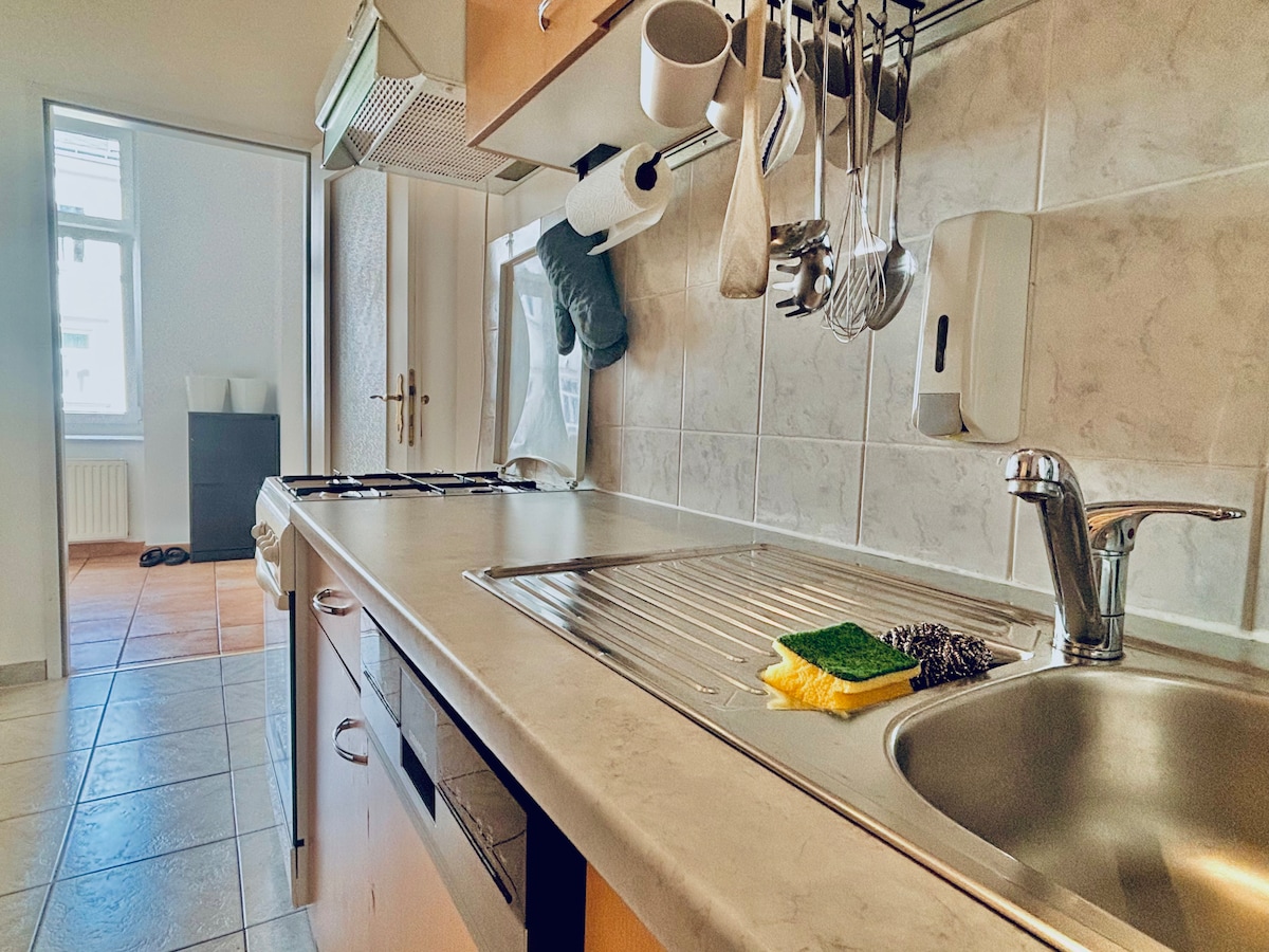 Descoperă orașul care trăiește la cel mai înalt nivel în apartamentul nostru recent renovat, foarte central, de 40 m². Amplasat la etajul 2 al unei clădiri istorice, acest spațiu exclusivist are un living spațios, dormitor confortabil, baie cu toaletă și o bucătărie bine utilată. Dotările suplimentare includ o canapea extensibilă, TV, WLAN, mașină de spălat și o bucătărie completă. Toate nevoile tale zilnice, magazine, cafenele și restaurante chiar după colț. Scufundă-te în artă, cultură, cumpărături și obiective turistice la câțiva pași.