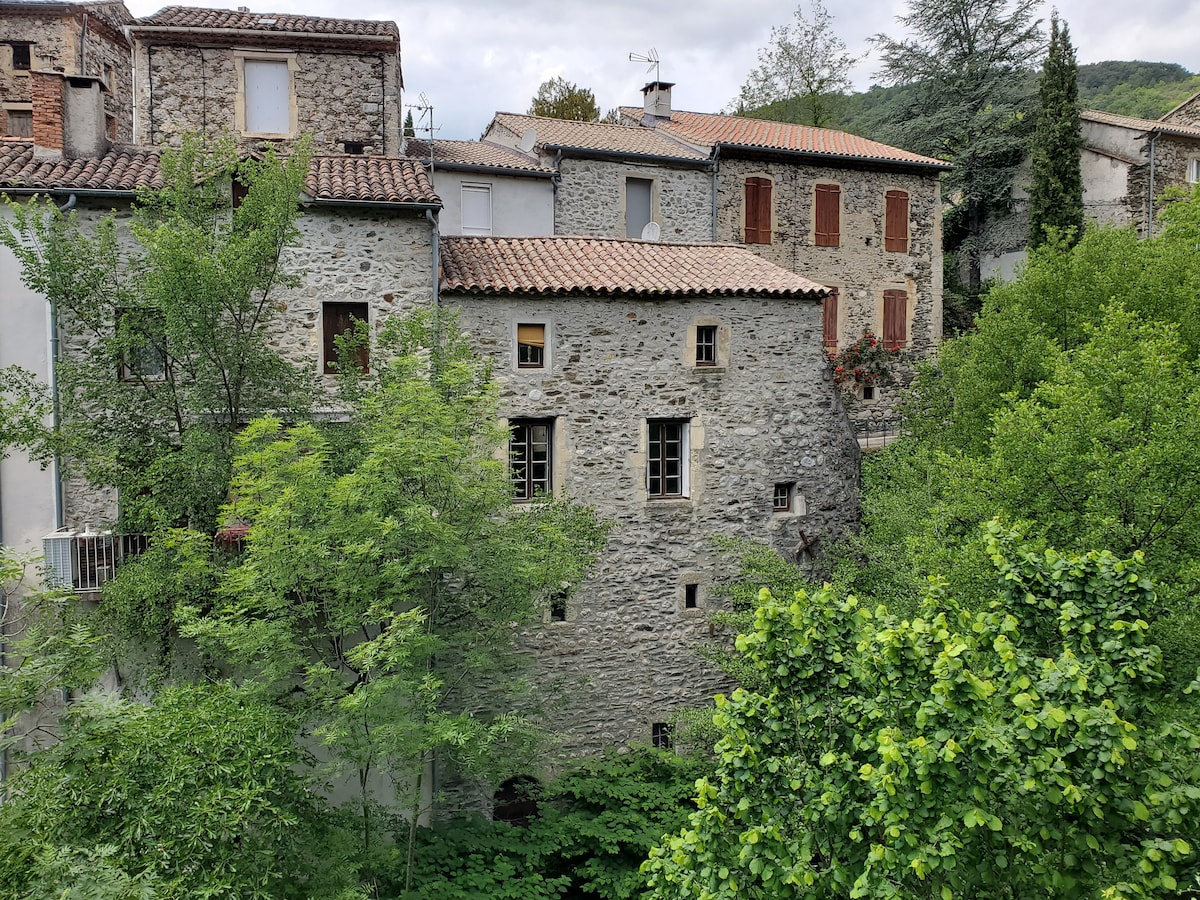 Two bedroom apartment in an ancient chateau in the the heart of the Cevennes. Completely redone with careful attention to original details, but with brand-new kitchen and bathroom. 90 square meters. Parking and separate entrance from private terrace. Bright, sunny days in the winter, and radiant floor heating. Lots of hiking trails and swimming in the river (in the summer). Market in Le Vigan on Saturday mornings - even in the winter. Beautiful life in the south of France.