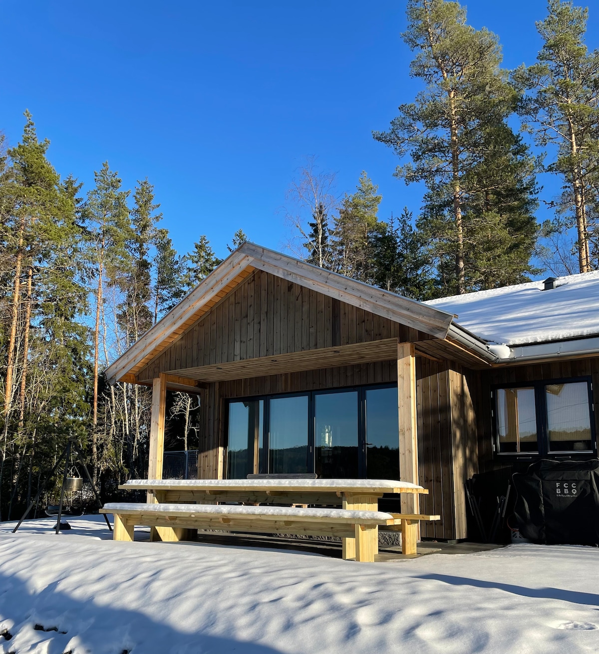 O cabană de elani fericită din Norvegia, lângă Oslo și aeroport