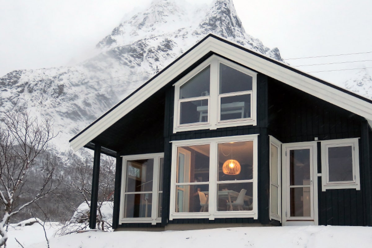 Bucură-te de magia aurorei de pe balconul cu vedere panoramică sau chiar de la masa de cină (septembrie-aprilie) Casă din lemn caldă și confortabilă de la sfârșitul anilor 1800, cu o grădină mare, situată în împrejurimi liniștite, la începutul Lofoten - pace și liniște garantate!