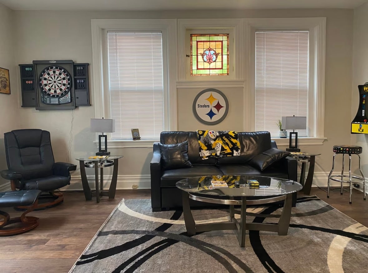 With a retro flare & a mid-century modern vibe, you'll enjoy this quaint bungalow in a quiet residential neighborhood conveniently located minutes from downtown Pittsburgh, the airport, many great sites, must-see attractions, universities & colleges. Whether you're in town for business, a sports event, bringing a student back to school or just want some time away, this cozy space is perfect! Everything in this bungalow is well appointed including keurig coffee, WiFi & a smart TV for streaming.