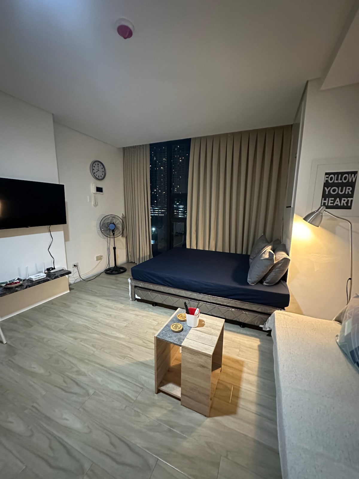 Situat în clădirea Avenir din Cebu, la câțiva pași de IT Park, acest apartament studio modern oferă Wi-Fi rapid, un pat matrimonial, aer condiționat, un televizor inteligent LG și o bucătărie complet utilată. De asemenea, te poți relaxa cu un duș fierbinte. Acest apartament este perfect pentru afaceri sau petrecere a timpului liber. Bucură-te de viața de noapte și de mâncare la barul de pe acoperiș sau relaxează-te în camera ta după o zi aglomerată, unde totul funcționează într-un spațiu proiectat de un om de afaceri australian pentru a te simți ca acasă în mijlocul mediului plin de viață din Cebu.