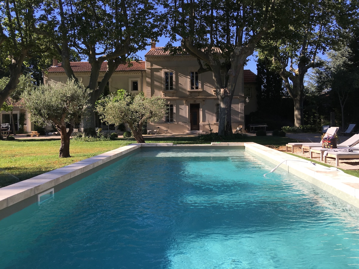 Mas , entre Orange et Avignon. Nous vous accueillerons dans un quartier calme à quelques minutes à pied du centre ville de Bédarrides, avec tous commerces Le terrain de 4000m2 paysagé est entièrement muré et clôturé. Nous résidons dans une autre partie indépendante Vous pourrez vous prélasser au bord de la piscine chauffée (hors hiver froid) L'Isle sur la Sorgue est à 20km, le pied du Ventoux à 30mn. La gare TGV est à 20/30 mn (suivant circulation), A7 Avignon nord 15mn et 0range sud 10mn