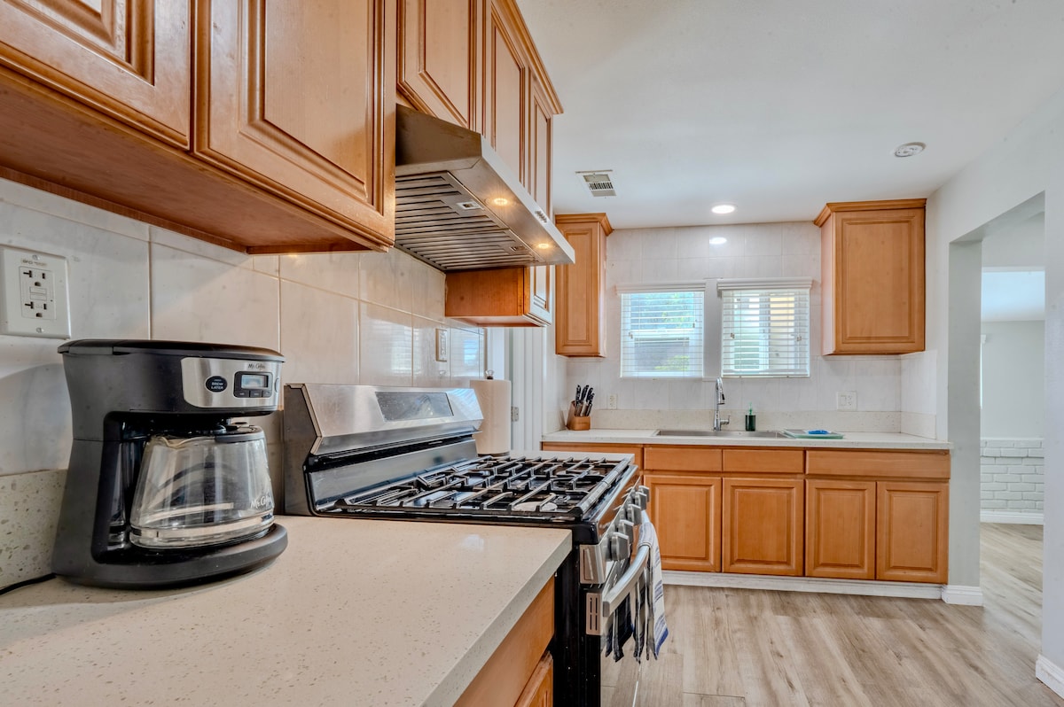 Escapada supremă din California te așteaptă în această minunată vilă cu 3 dormitoare și 2 băi cu un singur etaj din Hacienda Heights! Cartier liniștit pe deal, dar la câțiva PAȘI de TOT, cum ar fi mall, supermarketuri, parc regional și restaurante de înaltă clasă! Tesla Supercharger și Drive Thru Starbucks la mai puțin de jumătate de milă. 30 de minute de mers cu mașina până la Disneyland & Knott's Berry Farm, local sau FWY. Fiecare cameră este luminoasă și aerisită, un Smart TV nou-nouț de 65 inchi în livingul cu tavan înalt.