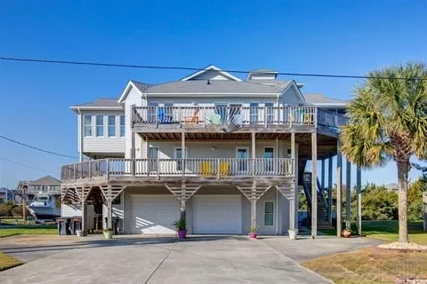Above the garage apartment with private entrance. There are 18 stairs that you must climb to get to the apartment. You will have access to our back yard and side yard for grilling if you would like to bring one. We are about a mile from beach access for 4x4 driving and walk on access. We are 7 miles from the Cape Hatteras Lighthouse and 6 miles from the ferry terminal in Hatteras.