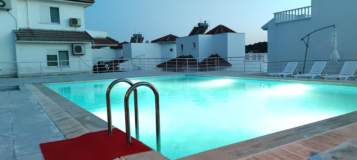 Aici locuiești într-un 1+1 fantastic de frumos, cu terasă privată și jacuzzi comun,piscină și saună. Aproape de plaja Cleopatra, magazine și restaurante! Serviciu personal Apartamentul are tot echipamentul pe care ți-l poți imagina. Parcare gratuită pe stradă în afara parcării Avem mai multe apartamente de închiriat. Bine de știut dacă sunteți o familie mare care vine:) Piscina este închisă pentru sezonul 2025
