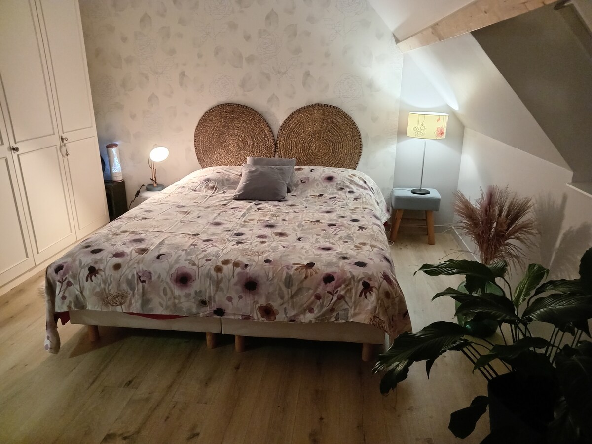Vei sta într-un apartament independent de 80m2. Decorată cu atenție, această locuință are o bucătărie deschisă complet utilată, cu vedere la living. În ambele dormitoare sunt furnizate cearșafuri, iar prosoapele vor fi la dispoziția ta. În cele din urmă, pentru un confort optim, oferim capsule de cafea, ceai ... Parcare gratuită în față, aproape de centru, unde veți găsi brutării, baruri, restaurante...precum și multe case de șampanie.