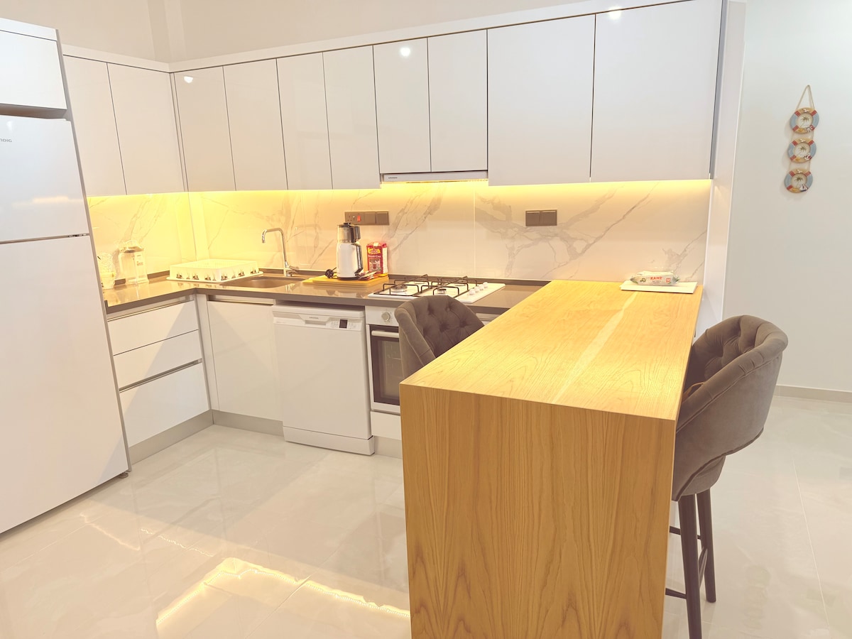 Penthouse nou-nouț, cu locație unică pe frumosul far cu piscină privată cu apă sărată pe terasa de pe acoperiș. Locație minunată pe malul mării în Esentepe, cu vedere la mare și la munte la 360 de grade și la 3 minute de mers pe jos de plaja Esentepe. Aici te poți bucura de zile leneșe într-un apartament mare de 110 metri pătrați cu 3 dormitoare și 2 băi. Terasă mare pe acoperiș cu piscină cu apă sărată, grătar și grătar cu priveliști minunate. Unitatea are o sală de gimnastică, hamam, saună și cinematograf . (nu a fost încă terminat)