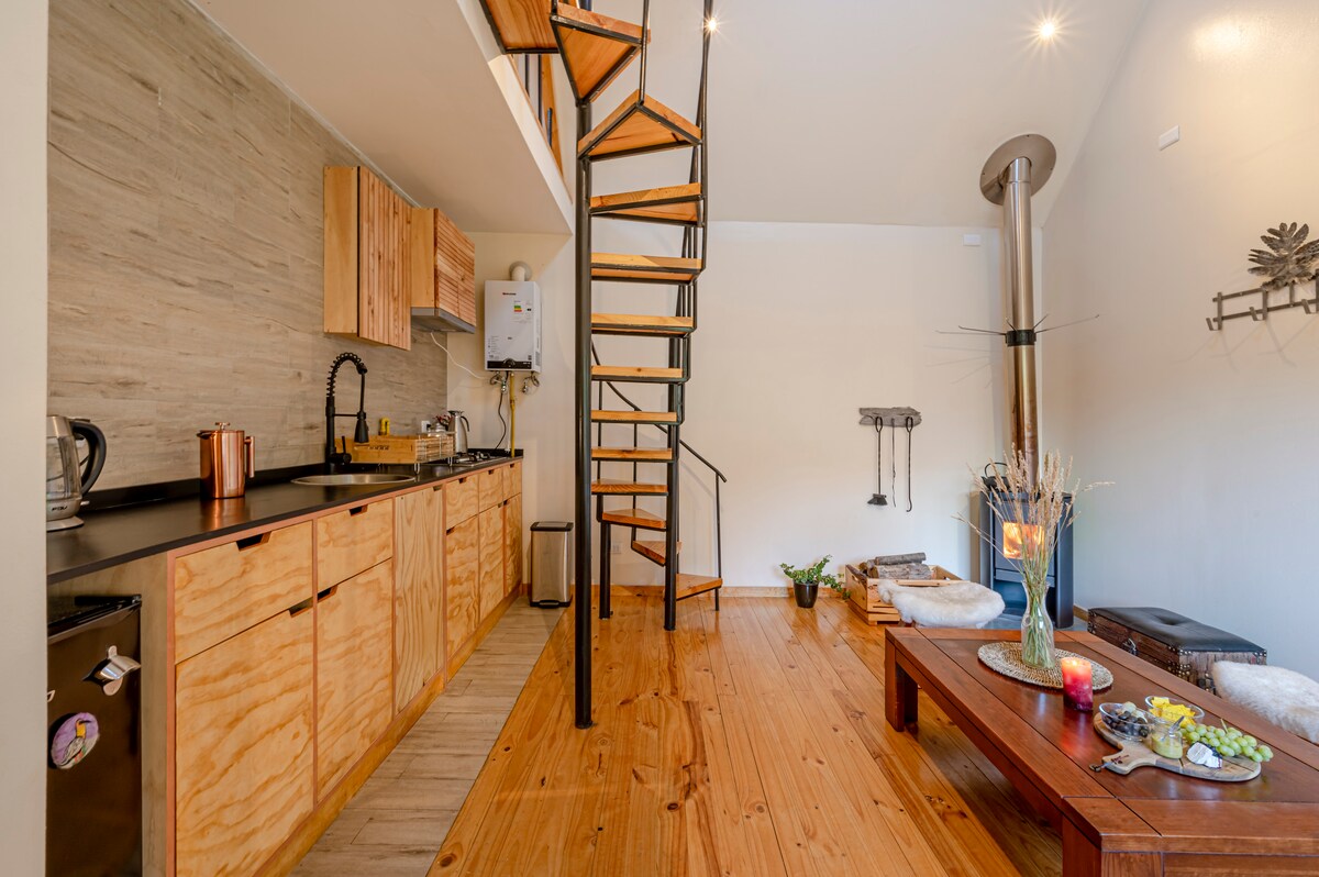 Refugiu rustic și confortabil în Patagonia chiliană Trezește-te în fața munților înzăpeziți și a pădurii veșnic verzi. Cabană pentru 3 persoane cu aragaz cu lemne, bucătărie echipată și terasă cu grătar. Conexiune reală cu natura: fără Wi-Fi sau TV. Include un kit de bun venit cu produse de casă și opțiunea de a adăuga un mic dejun vegan, fără gluten sau vegetarian. Aproape de Laguna los Palos, cascada Cola de Gallo, traseul El Tabo și Bahía Acantilada. La numai 8 km de oraș. Vino și experimentează Patagonia