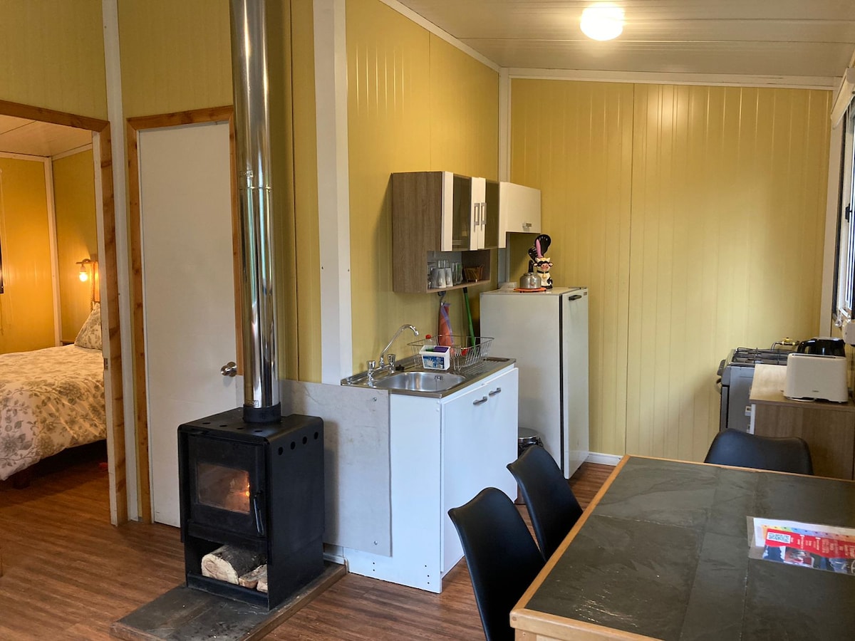 Această cabană confortabilă are două dormitoare: un dormitor matrimonial cu pat dublu și un pat de o persoană și un al doilea dormitor cu două paturi de o persoană. Are o baie cu tot ce ai nevoie, o bucătărie/sufragerie complet utilată și încălzire cu lemne cu ardere lentă. Are internet prin satelit și parcare privată. Situat într-un mediu liniștit, perfect pentru odihnă și bucurându-se de Patagonia în confort. 24 km de Marble Chapels and Explorers Trail