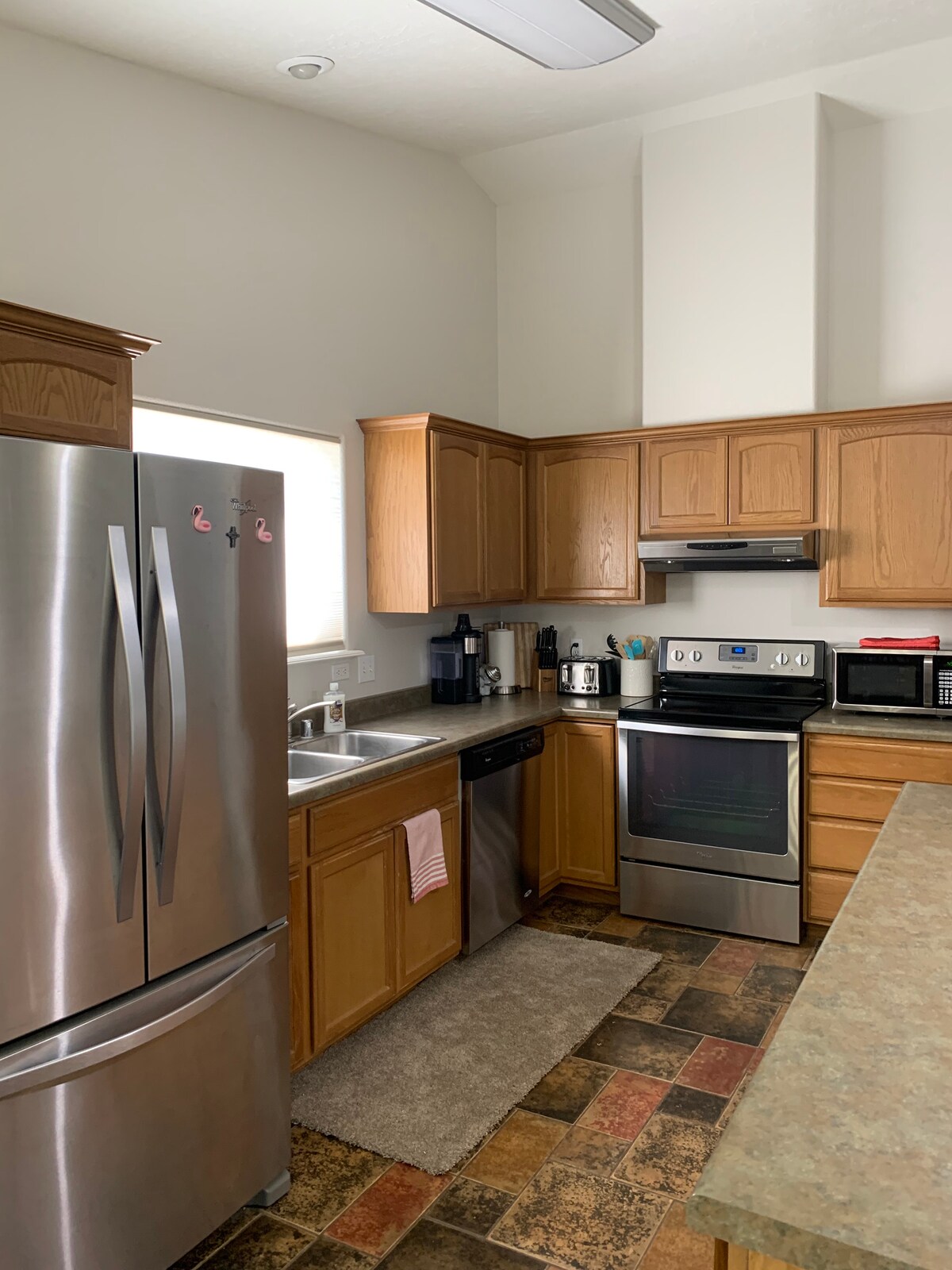 Casă luminoasă și confortabilă cu 3 dormitoare și 1 baie în inima Farmingtonului. Bucură-te de două paturi king-size, un pat queen-size, o bucătărie completă și un televizor echipat cu Roku pentru redare în flux facilă. Parcul Jaycee se află chiar peste drum, cu locuri de joacă, terenuri de baschet, terenuri deschise și trasee de mers pe jos. La doar câteva minute de magazine alimentare, restaurante și complexul sportiv - un loc ideal pentru o ședere confortabilă și convenabilă.