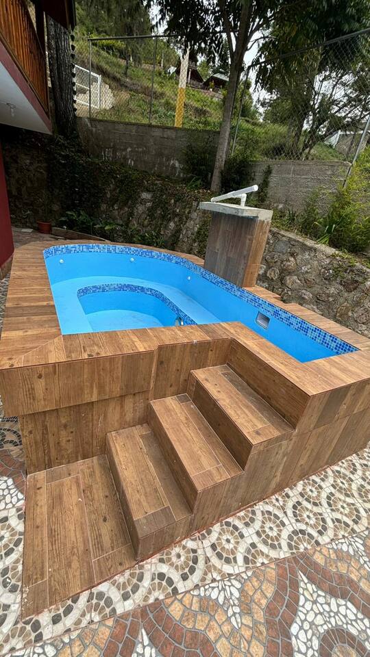 VACANȚĂ DE NEUITAT..VILA VIRGINIA TE AȘTEAPTĂ. Împărtășește expresia naturii în fața peisajului spectaculos al Cordillera Central. Reședință la țară cu sufragerie, jumătate de baie, bucătărie-desayunador, terasă mare acoperită🌡, JACUZZI FIERBINTE, terasă în aer liber, grătar, casita de jocuri, trei dormitoare: unul cu pat dublu și baie privată; o altă cameră cu pat dublu și pat dublu și pat single și baie privată și o a treia cu pat dublu, cabină și baie privată