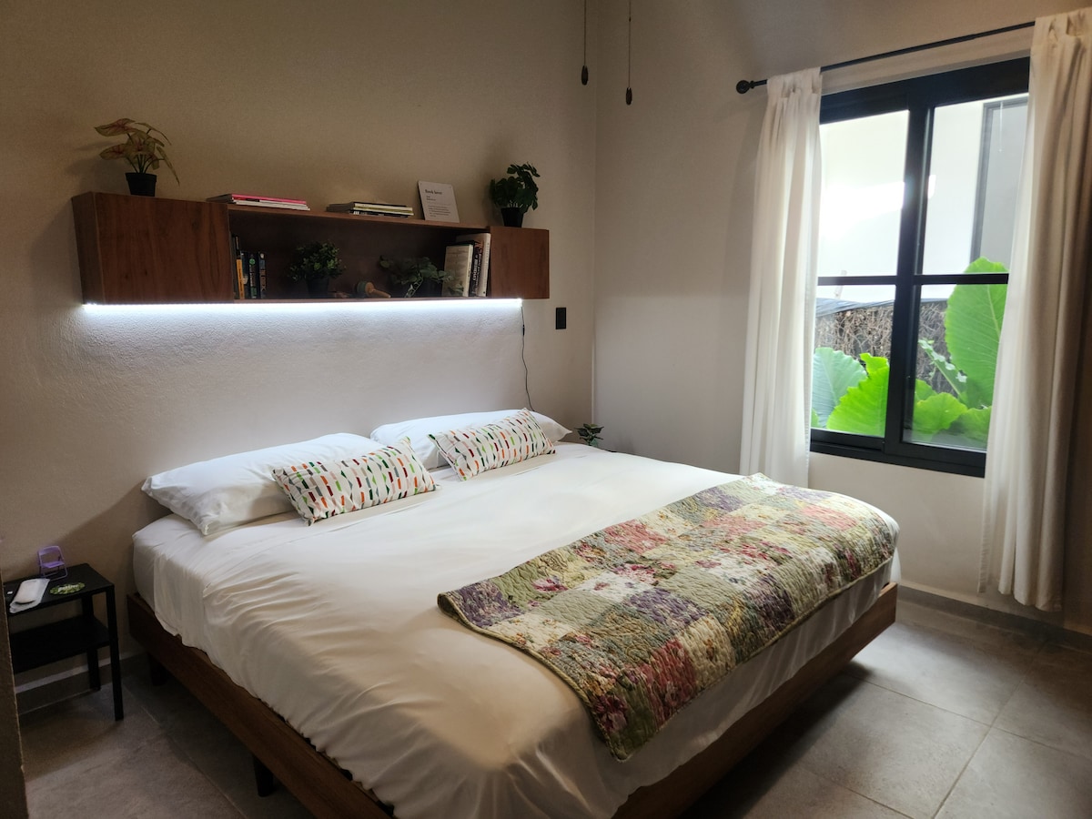 Aljanna House Bacalar, situată la câteva străzi de terminalul de autobuz și la 10 minute de mers pe jos de lagună, este locul perfect pentru a te bucura în acest paradis mexican din Caraibe. Din 2019, am întâmpinat călătorii cu o atmosferă confortabilă, potrivită pentru familii. Camerele noastre sunt concepute pentru a-ți oferi restul pe care îl meriți, ideal pentru cupluri, familii sau grupuri de prieteni, plus șederea ta include mic dejun gratuit în fiecare zi, astfel încât să-ți poți începe diminețile cu energie și bun gust.