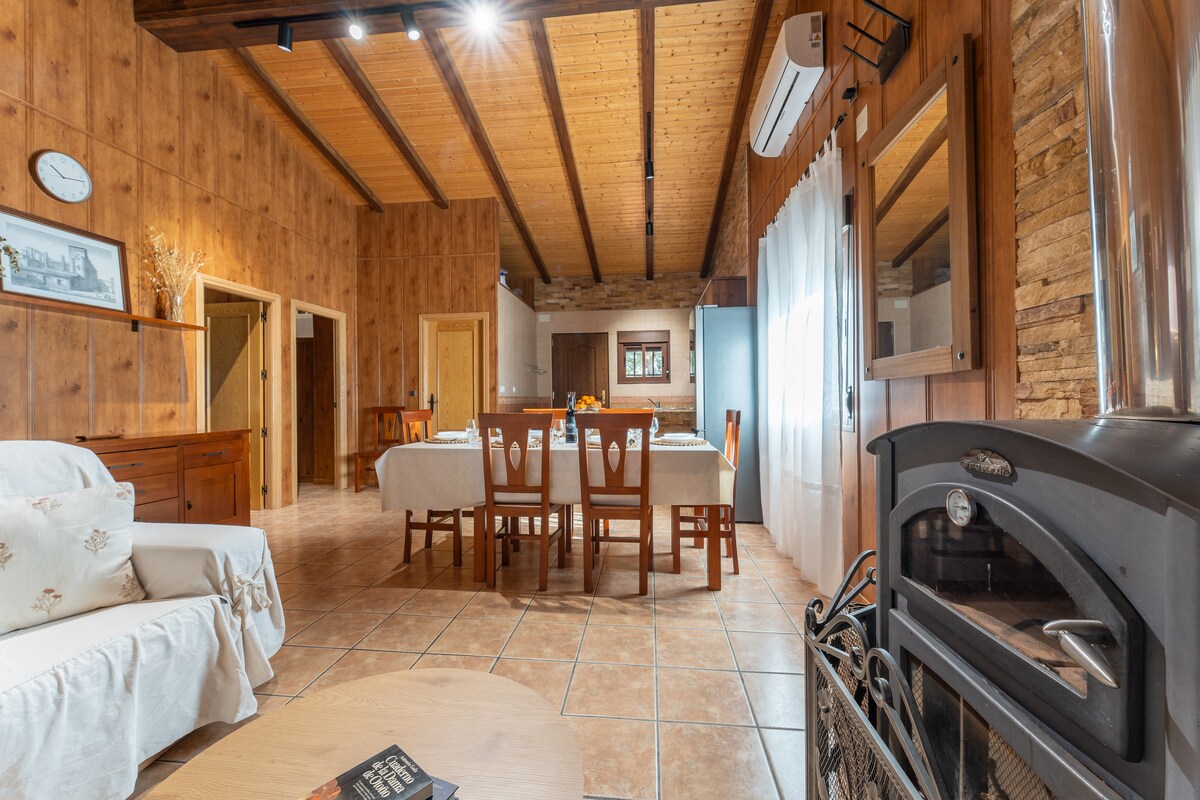 Casă de lux 600m2 cu 6 dormitoare duble, 5 duble și unul cu două paturi supraetajate cu pat trundle, 6 băi, 2 băi și piscină privată. Situat pe o proprietate ,înconjurat de dehesa și vid. Se compune din: 2 locuințe independente și atașate cu două etaje; piscină (cu grătar, chiuvetă de bucătărie, vestiar și baie); și 3 grădini, una cu zonă de joacă pentru copii. Are încălzire centrală și aer condiționat în fiecare dormitor și o parcare care poate găzdui cel puțin 8 mașini.