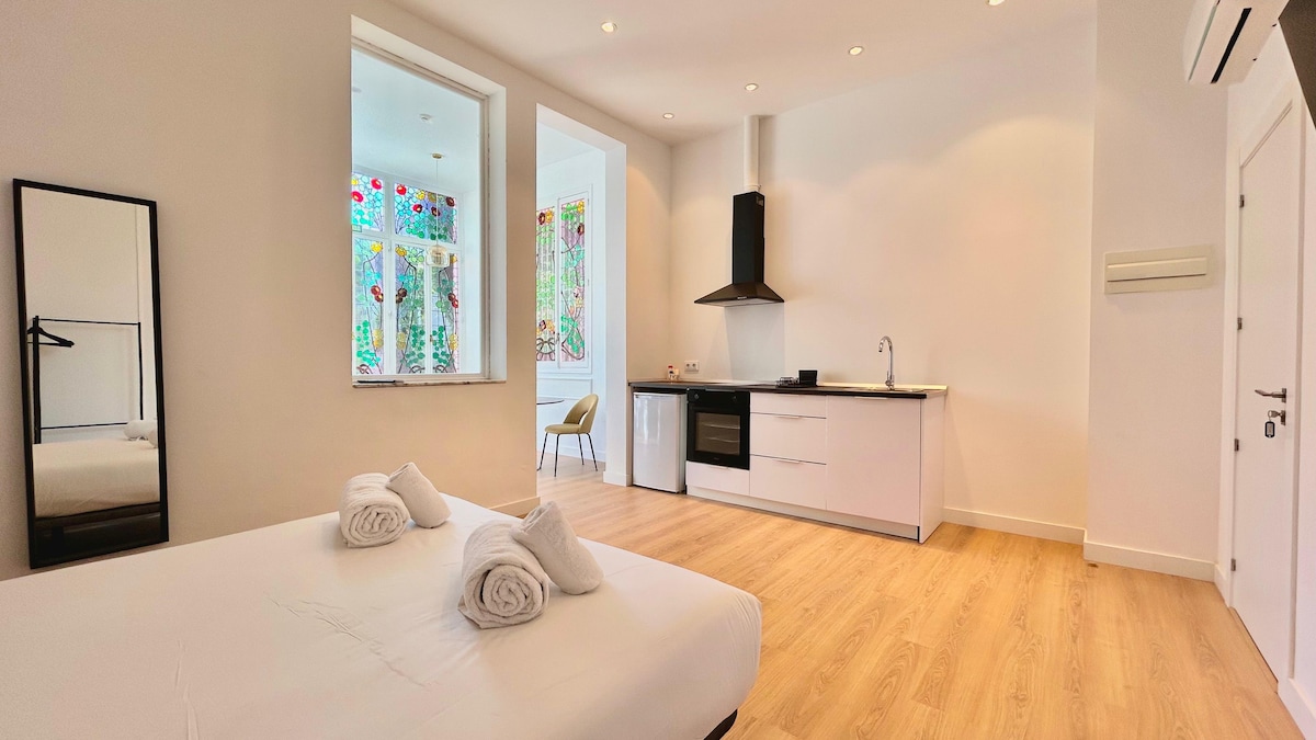 Studio Apartment For 3 guests 2 private terraces The building has elevator Welcome to our cozy apartment located in Tapioles! Come and enjoy with friends or your partner the location that this unit offers you, perfect for tourists wanting to explore the area. This studio apartment has a double bed, and at the same time, it has a single sofa bed to provide comfort for 3 travelers.
