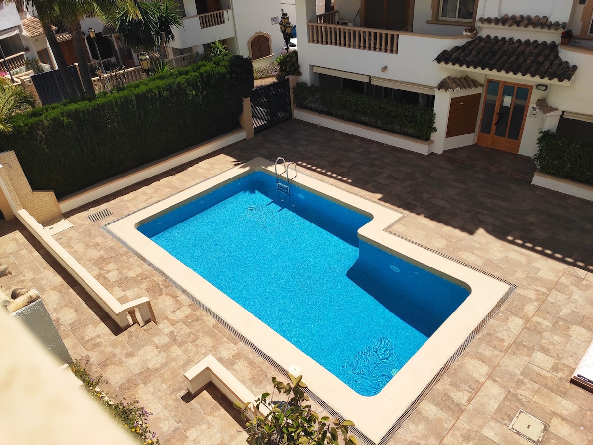 Un apartamento/adosado a segunda línea del mar, 3-5 mins andando. Está muy bien ubicado teniendo el paseo del mediterraneo al lado junto con chiringuitos y restaurantes. La playa de rocas en el paseo es accesible. El canal Nou Fontana está a unos pasos y andando por el canal a unos 8 minutos está La playa El Arenal y sus zonas de comercio y restauración. Dispone de amplio garaje privado. La zona común es amplia y cómoda. El apto comunica directamente con la piscina y ademas no da a poniente.