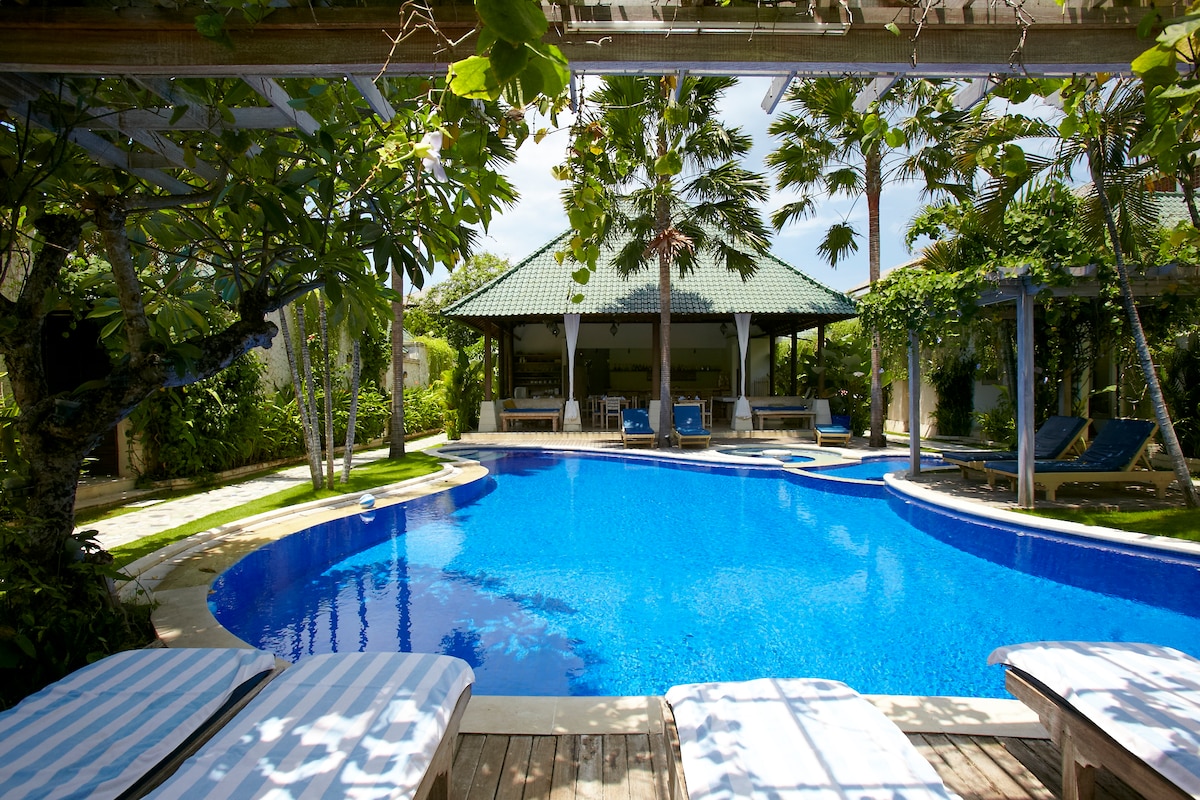Această cameră este un apartament spațios și luxos, de 87 de metri pătrați. Are un pat king-size (lățime 240 cm) cu baldachin, cu opțiunea de a solicita paturi duble hollywood. Baia exterioară expansivă include o cadă de baie terrazzo cu vedere la cer și un spațiu de îmbrăcat. Livingul, proiectat în stil balinez, cu tavane înalte, are o bucătărie complet utilată. În fața terasei vei găsi o piscină publică. Capacitate: 2–3 oaspeți (pat suplimentar disponibil la cerere).