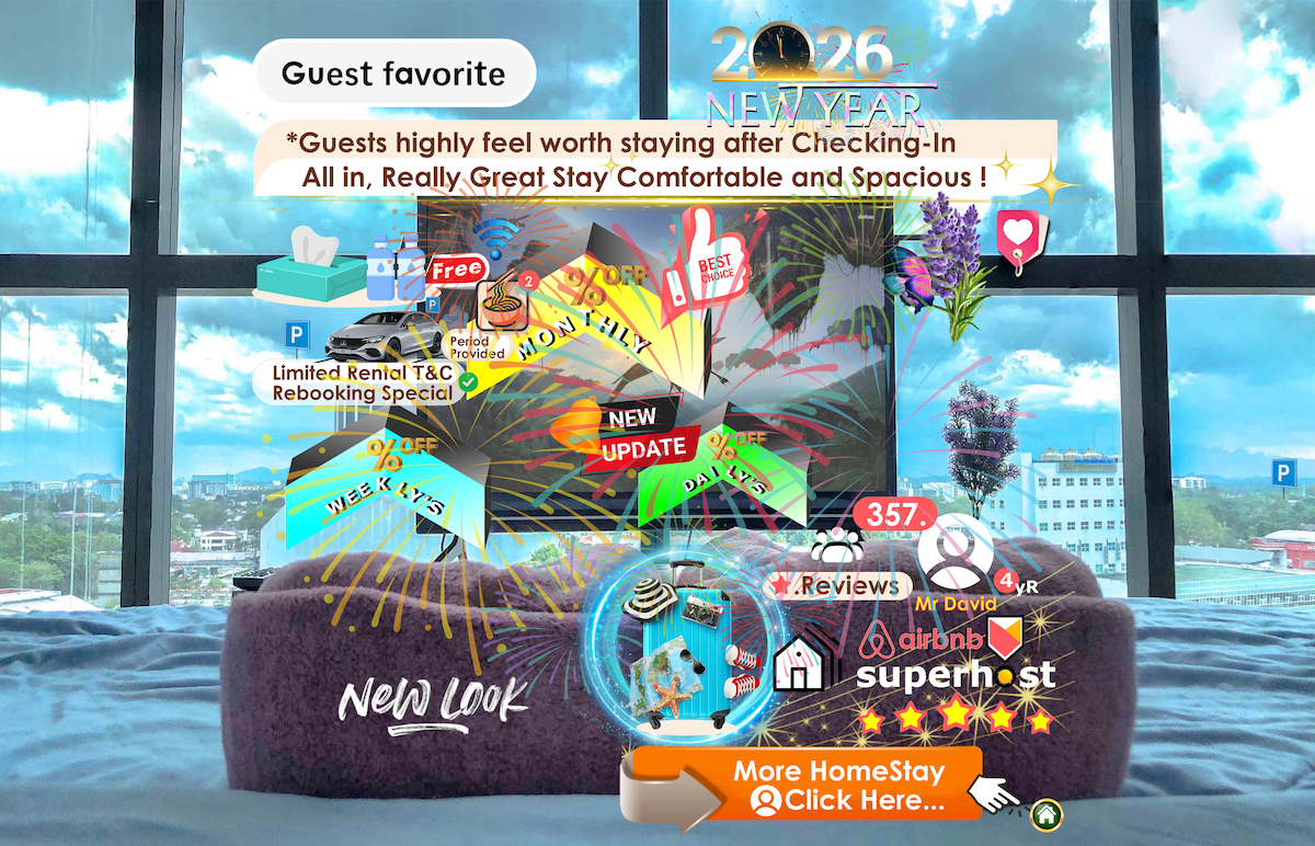 Forget worries in this spacious and serene space of muji style home stay at 12 level. ✅Unique & beautiful high sky, sunset, city view & peacefully quiet place. ✅Handpicked most comfortable bed no other homestay could provide. ✅Relaxation fun stay. ✅10 minutes drive to town. ✅15 minutes drive vivacity. ❌No parking lot. For security purposes. A photo of your identity card is required.