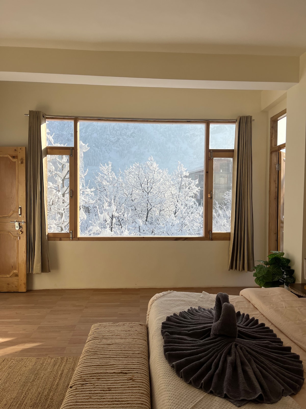AIRCRIB |2 Private Bedroom & Balcony | Old Manali 🏔️ Highlights: ★🌄 Balcony views of the Vashisth Mountains, Jogini Waterfall & apple orchards ★📍 2-mins walk from Dragon Chowk, 10-mins drive from Manali Bus Stand ★ 📶 High-speed Wi-Fi ★ 📺 Android TV with a movie box offering 1000+ movies ★ 🍽️ In-house food available ★ 🧺 Laundry service available ★ 💧 RO drinking water ★ 🔥 Heater available at ₹300/night ★ 🚗 On-site parking