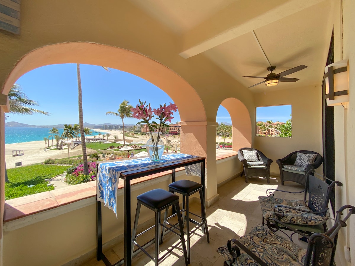 Enjoy breathtaking sunrises and stunning ocean views from your own private terrace! This recently updated condo is tucked away in the desirable Misiones del Cabo complex, just outside of downtown Cabo San Lucas. You'll love the resort amenities offered in a private community setting, including private beach access. Bask in the sun while poolside, enjoy amazing food and a drink at the bar and restaurant, or take a short drive to the best beaches, nightlife and restaurants Los Cabos has to offer.