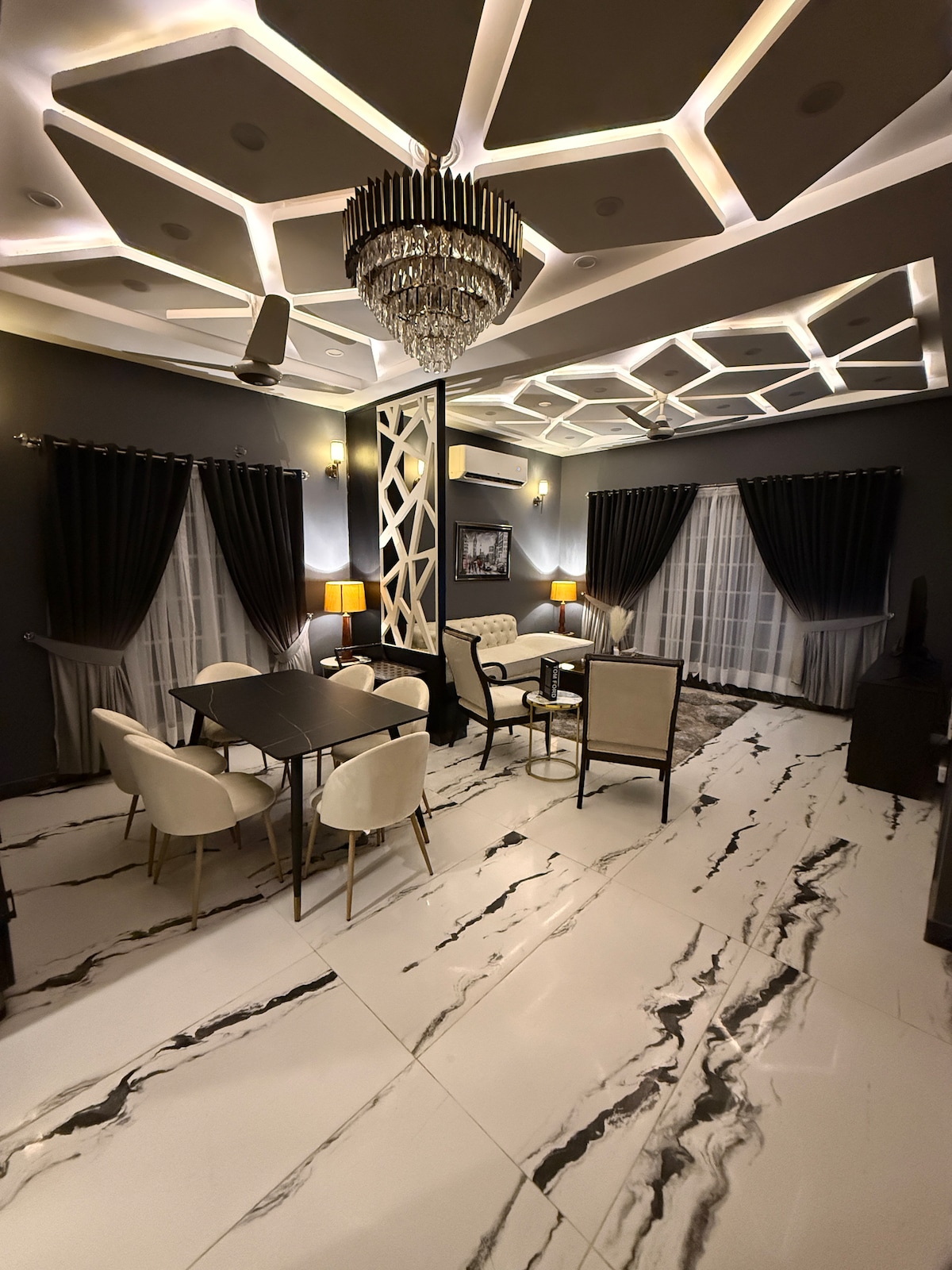 Experimentează viața de lux în inima orașului Bahria, Lahore. Răsfață-te cu amestecul perfect de eleganță și confort în apartamentul nostru studio modern și complet luxos. Intră într-un spațiu frumos proiectat, cu un lounge confortabil, o bucătărie complet utilată și un televizor inteligent cu Android pentru divertisment, de asemenea, un ventilator automat de acoperiș. Bucură-te de intimitate completă cu check-in independent. Indiferent dacă vizitezi în interes de afaceri sau de agrement, acest refugiu elegant promite o ședere de lux pe care nu o vei uita niciodată.