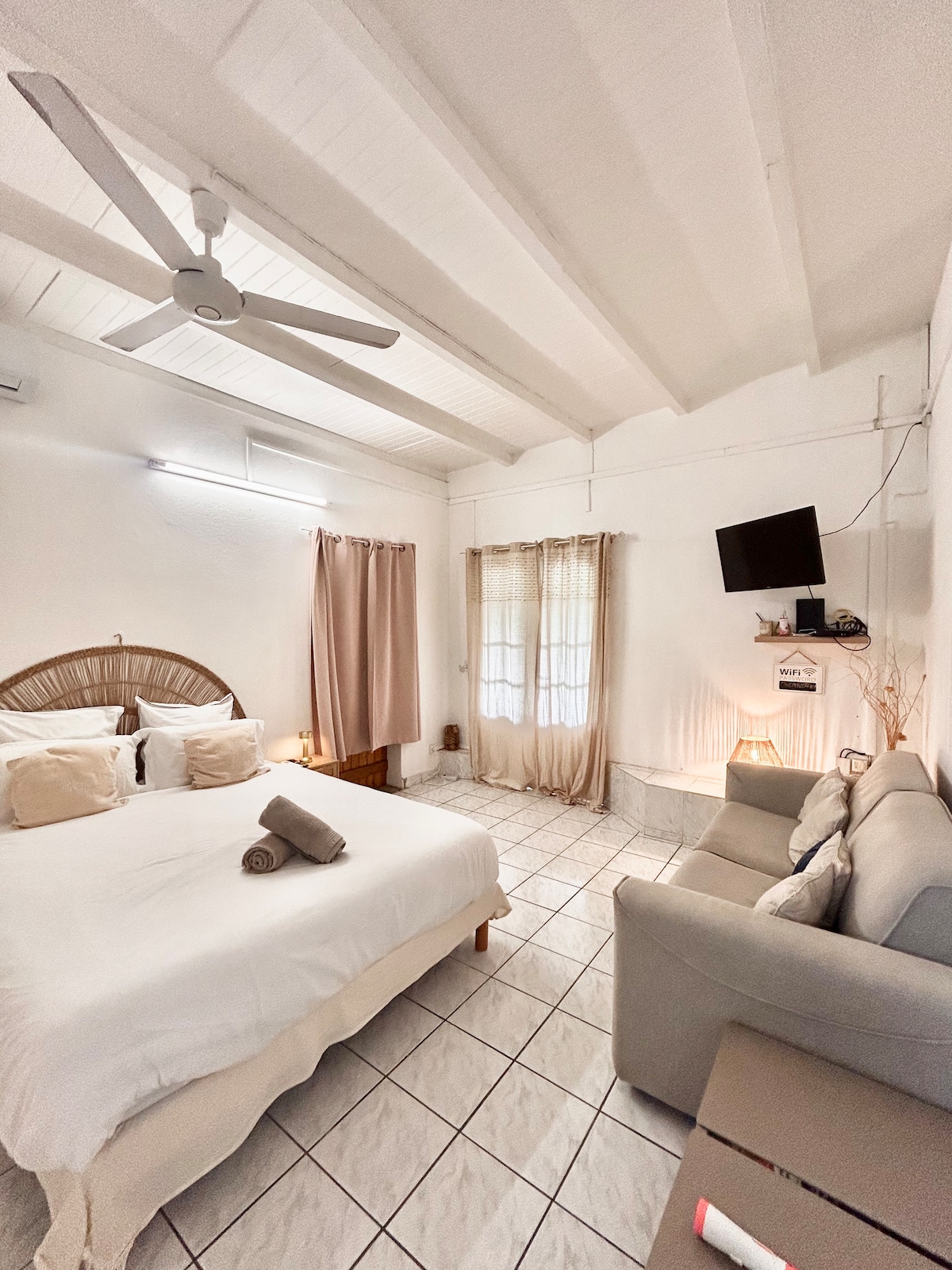 Acest bungalou spațios, cu jacuzzi, situat în mijlocul naturii, situat ideal la 15 minute de aeroport, la 5 minute de centrul comercial, în centrul insulei, atât de perfect pentru a merge la plaje sau pentru a merge la râu. O zonă de living frumoasă, o bucătărie complet utilată, o terasă, o zonă de grădină, un dormitor mare cu mezanin care permite încă 2 oaspeți, proprietate complet securizată. Te vei bucura de un spațiu liniștit și plăcut pentru a trăi o experiență de neuitat!