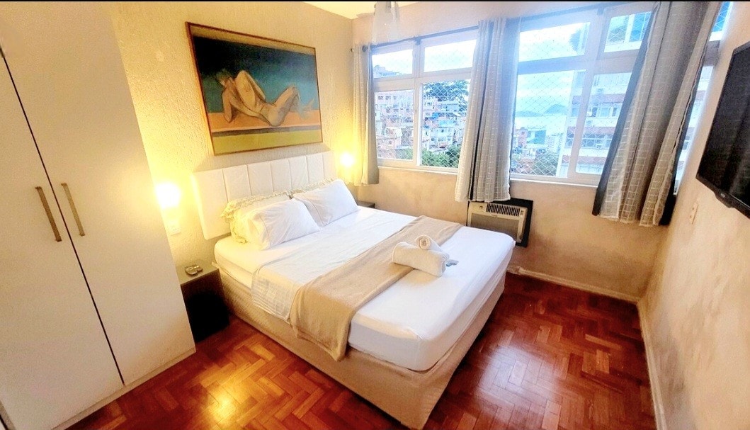 Apartament confortabil cu 2 dormitoare în inima orașului Ipanema! Cu o locație excelentă, vei fi la doar câțiva pași de plaja Ipanema și de lagună, înconjurat de restaurante, baruri și magazine excelente. Spațiul are: ✅ 2 dormitoare confortabile cu paturi spațioase ✅ Baie ✅ Bucătărie complet utilată. ✅ Wi-Fi rapid ✅ Aer condiționat în ambele dormitoare Perfect pentru familii sau prieteni, cu vedere la unul dintre cele mai fermecătoare cartiere din Rio!