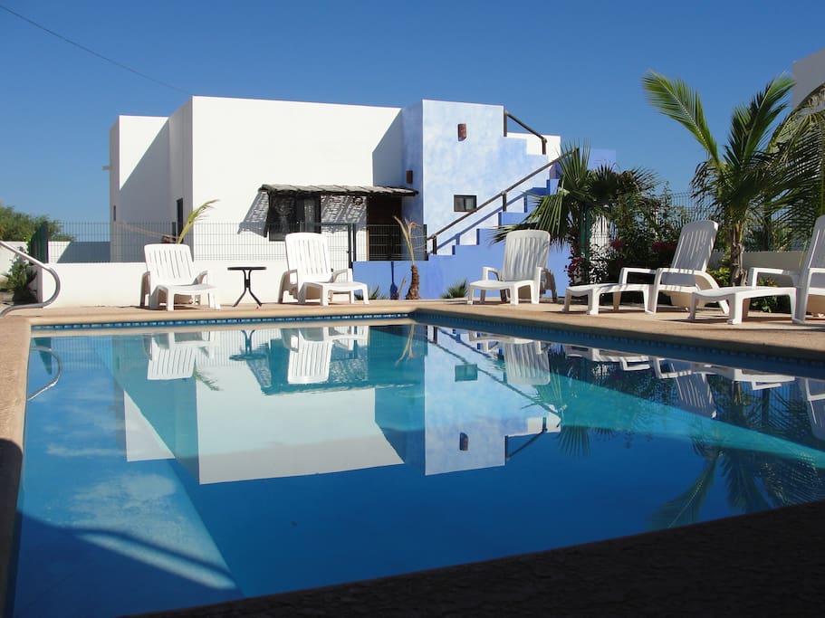 La Casita de Suenos, visele devin realitate. Frumos, confortabil, privat și sigur, închis, ecologic și jocuri pentru copii. Cocoțat peste Marea Cortez, plaja noastră goală se întinde pe kilometri. 18 mile de Aeroportul Los Cabos. Fiecare detaliu este oferit pentru o vacanță uimitoare. Poate dormi până la 4 persoane, cu o terasă mare umbrită pe 2 hectare. Perfect pentru familii, păsări, pescari, surferi și kite surferi. Dacă preferi, poți adăuga mese, servicii de concierge sau le poți combina cu marele Palacio de pe malul mării pentru a găzdui până la 12 persoane.