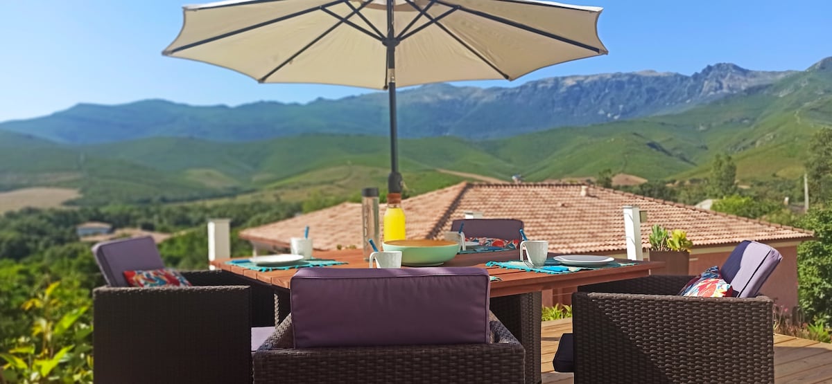 Oferim cazare cu aer condiționat, cu vedere la mare și munte, turism clasificat ** * , situat la etajul 1 al unei case independente, liniștit pe o terasă cu grădină în inima pomilor fructiferi într-un mic sat din secolul al XIV-lea, între Calvi și Ile-Rousse . Modern și rafinat, situat în mijlocul siturilor istorice: mănăstirea Corbara, biserica Ste Trinité, plaje, sate (Pigna, San Antonino) și trasee de drumeții care au făcut obiectul mai multor rapoarte, care urmează să fie descoperite pe internet.