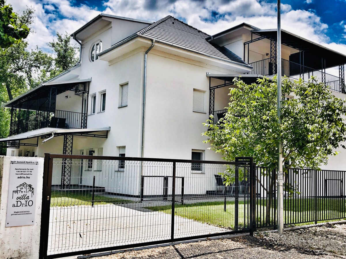 Our brandnew apartmenthouse - built in 2017. - is situated 50m far from the 3km long free beach of Zamárdi. We offer several apartment to rent. Each flat has own parking place and terrace, some with garden connection. Shops, bars, restaurants, playground are in max. 150m - 200m distance from the house.